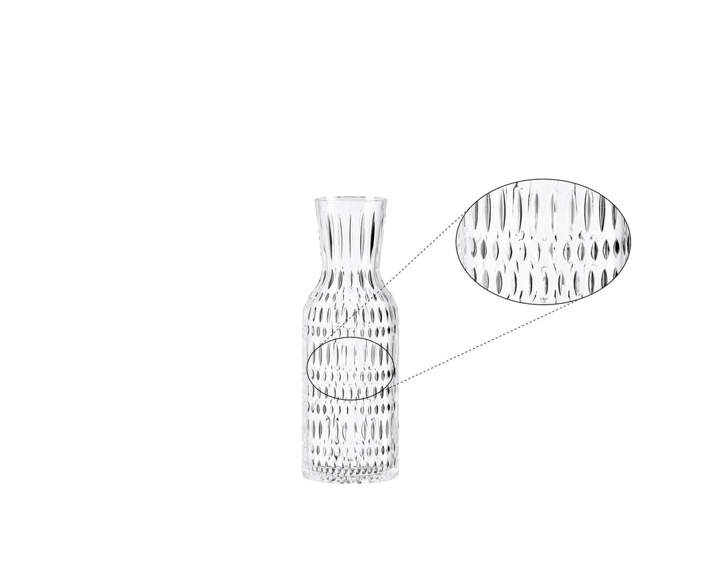 Its slim shape fits in your fridge door and features a set of ridges at the base to give the user a comfortable grip. This carafe is designed to hold 1 liter. The NACHTMANN Ethno glassware series takes its unique personality from its distinctive, harmonious pattern of close-packed notched elements. Their facets create a sparkling play of light, particularly in evening settings. Combining multicultural flair with easy-going lightness.
