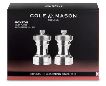 Made from high-quality metal alloy and at 15 cm / 6 inches tall, the Hoxton mill with silver plated finish provides a compact seasoning solution that embodies the quality, heritage, and style of the Cole & Mason brand, and is very well suited to smaller kitchens or to have out on the dining table. Easily adjust the grind from fine to coarse by turning the knob on top of the mill. Made from high quality metal alloy with a silver-plated finish. Arrives unfilled. Single mills come in a premium gift box and Sets come in a premium gift box. Both single mills and sets come with a polishing cloth. The grinding mechanisms (sharp anti-corrosion ceramic for salt, design registered Precision+ carbon steel for pepper) are supported by a lifetime guarantee. This allows you to season with confidence, knowing you will achieve a high-quality output and consistent milling time after time.